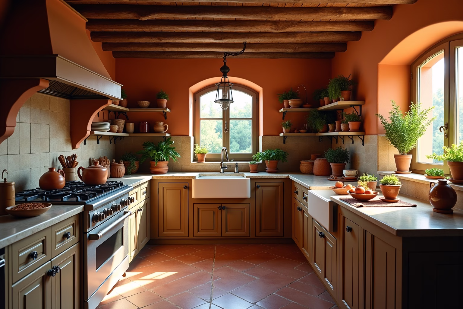 Dekoriere toskanisch: Schaffe eine toskanische Atmosphäre in deiner Küche. Verwende Terrakotta-Töpfe, Olivenzweige, Zitronen und Kerzen. Spiele italienische Musik und genieße ein Glas Wein.