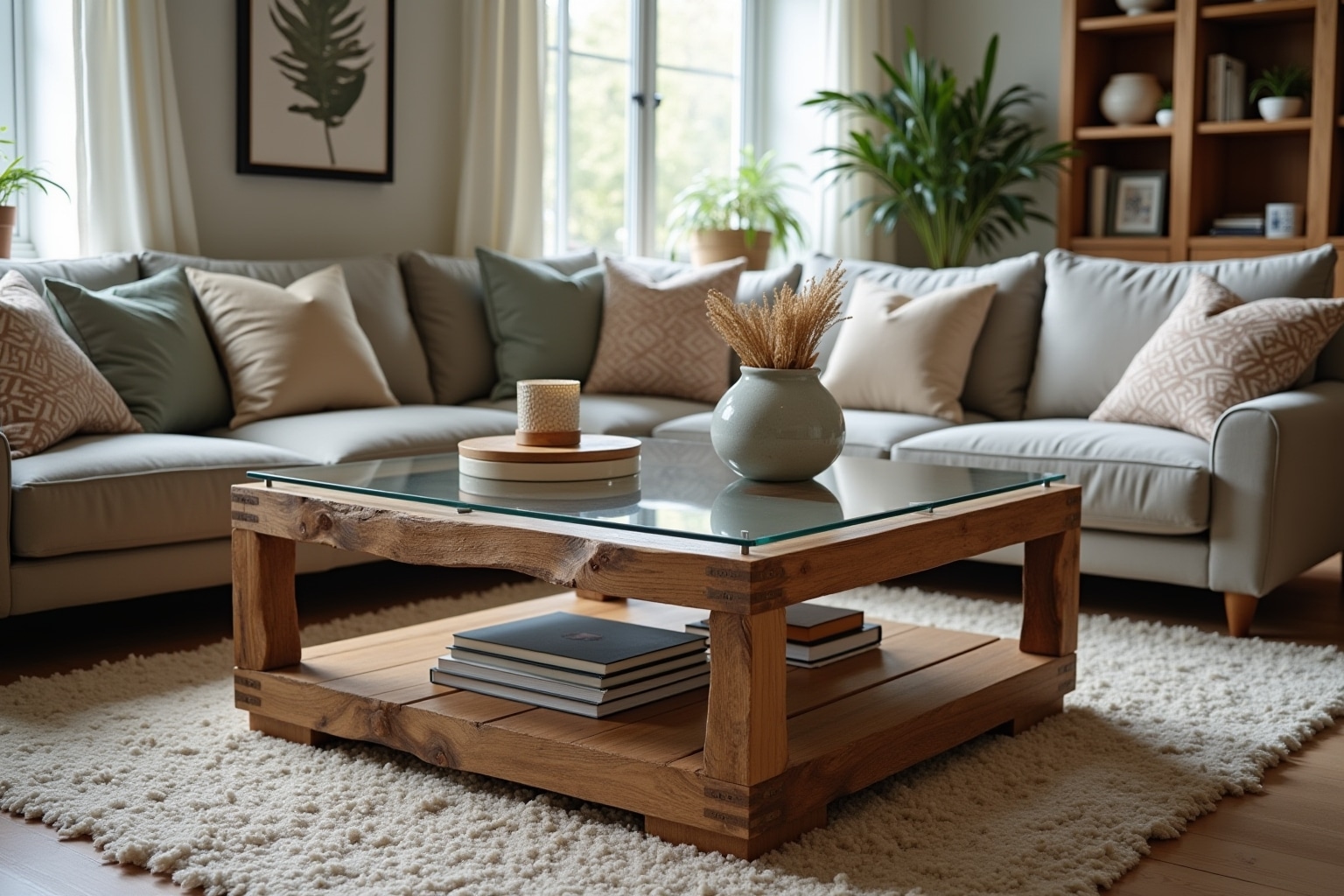 - Fertigstellung: Platziere den Bücher-Couchtisch in deinem Wohnzimmer und genieße seinen einzigartigen Charme.